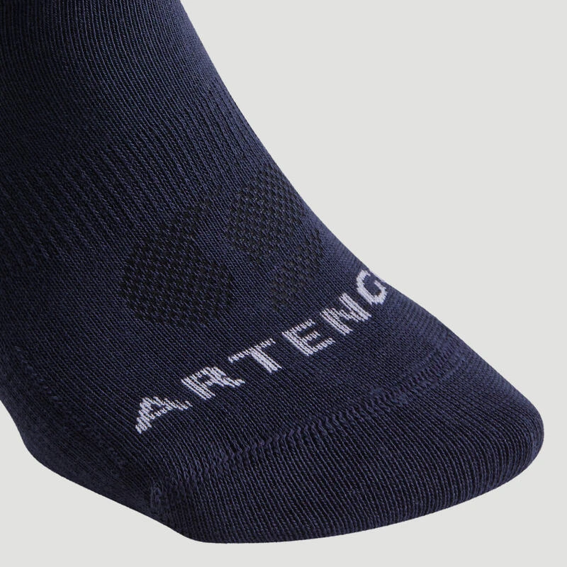 Ces chaussettes de sport Artengo ont été testées sur les terrains de pratique par des joueurs de tennis et autres sports de raquettes débutants, a aussi été validée la résistance globale du produit (aprÚs utilisation et lavages répétés).