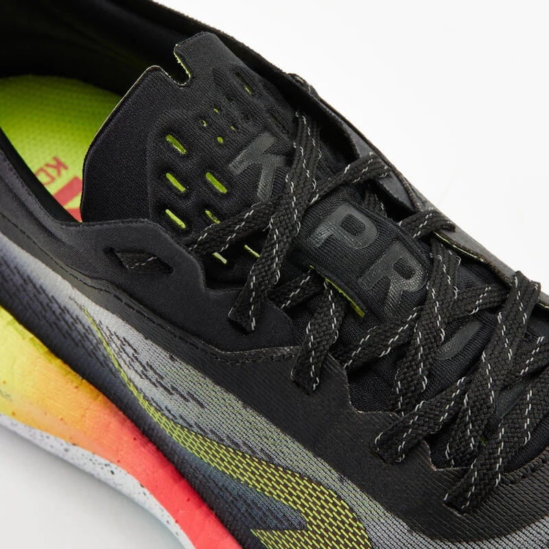 Le poids d’une chaussure de running a un impact important sur la dépense d’énergie et donc sur la performance du Runner : plus une chaussure est légère, plus elle contribue à la performance. La mousse VFOAM a été sélectionnée notamment pour ses propriétés de légèreté. Nos ingénieurs ont aussi travaillé sur l’optimisation du poids de la KD500 2 avec la géométrie de semelle travaillée en generative design (design assisté par ordinateur) : plus de crampons sur les zones les plus sollicitées.