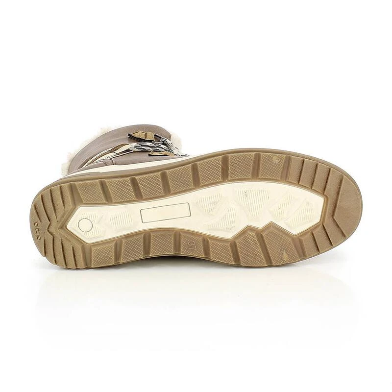 Réconfortante grâce à sa doublure chaude en fourrure synthétique et dotée d’une membrane imperméable, vous pourrez marcher sur la neige facilement avec sa semelle avec profil cranté et son sytème SCS